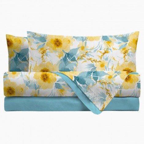 Completo letto matrimoniale nida, completo da sogno, grazie all'elegante fantasia floreale e alla texture piacevolissima. Lenzuolo sotto con angoli 180x200, lenzuolo superiore 250x300, 2 federe 50x80. 100% cotone.