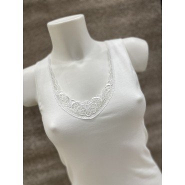 Maglia donna caldo cotone spalla larga tubolare con pizzo. Made in italy, senza materiali sintetici.